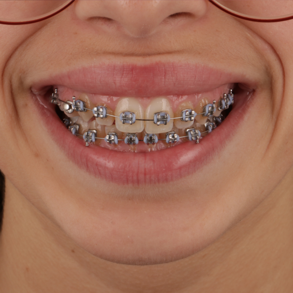 O movimento dentário ortodôntico é realizado através da colocação de brackets metálicos, cimentados diretamente nos dentes durante o período de tratamento e não podem ser removidos pelo paciente. Mensalmente, o paciente desloca-se à clinica para realizar consultas de controlo do aparelho.